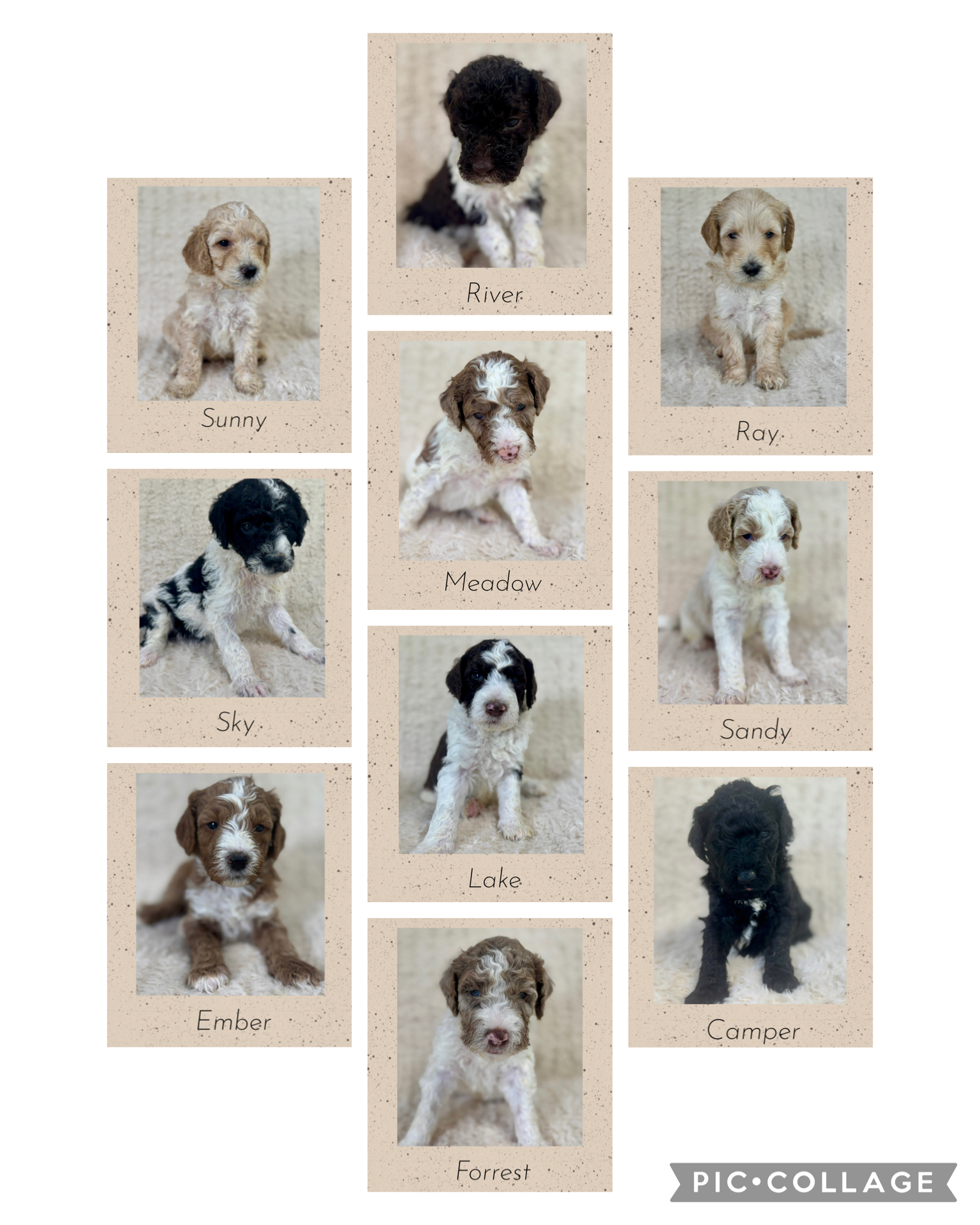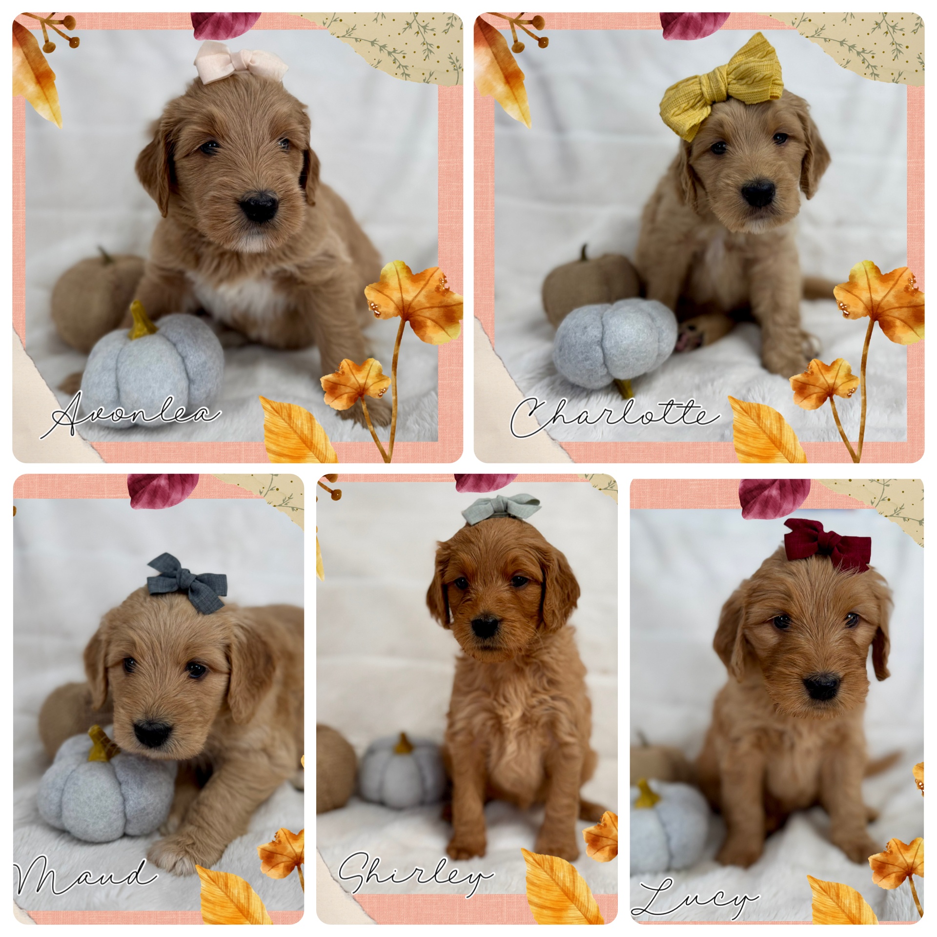 We are very excited about this pairing. Nessa (40 lbs) and Griffin (22 lbs) had their 9 beautiful babies on July 26! Puppies will be ready to go home September 21. They will be in the mini - medium size range of 25 - 35 lbs. Puppies are a range of cream, apricot and golden colouring with wavy or straight coats and furnishings. Nessa, our foundation girl has an exceptional temperament. She is calm, loving, nurturing, and intelligent. She has been proven to be an amazing mother and teacher to her puppies. Griffin is an absolutely lovely little dog. He is happy and loves everyone he meets. He is very well adjusted and adapts well to new environments. He loves to snuggle and be around people. This is Nessa's retirement litter.
