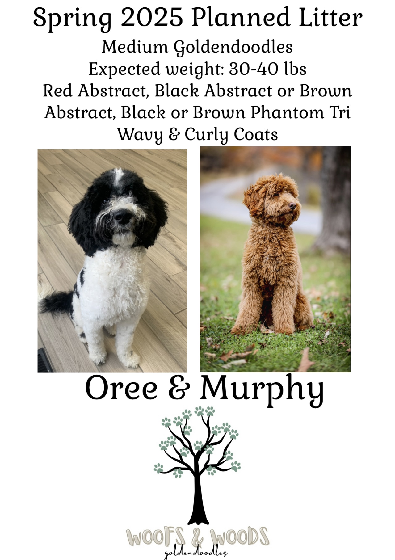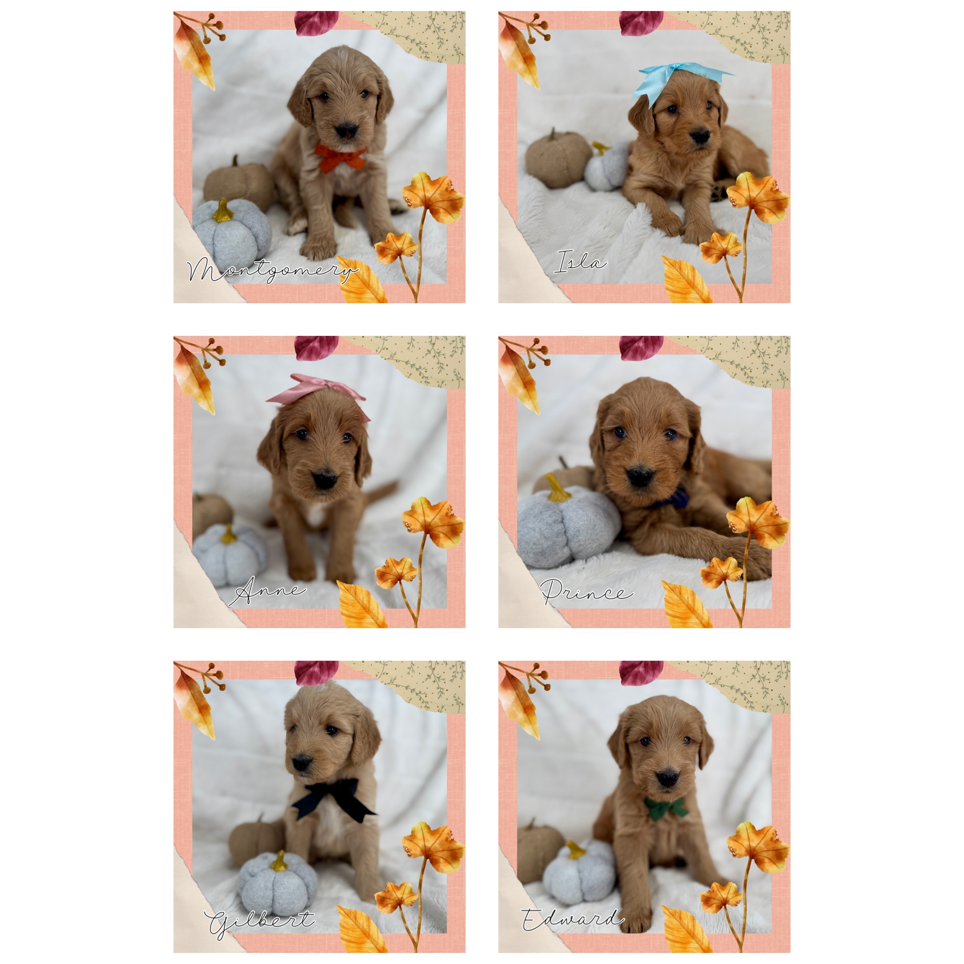 We are very excited about this pairing. Nessa (40 lbs) and Griffin (22 lbs) had their 9 beautiful babies on July 26! Puppies will be ready to go home September 21. They will be in the mini - medium size range of 25 - 35 lbs. Puppies are a range of cream, apricot and golden colouring with wavy or straight coats and furnishings. Nessa, our foundation girl has an exceptional temperament. She is calm, loving, nurturing, and intelligent. She has been proven to be an amazing mother and teacher to her puppies. Griffin is an absolutely lovely little dog. He is happy and loves everyone he meets. He is very well adjusted and adapts well to new environments. He loves to snuggle and be around people. This is Nessa's retirement litter.